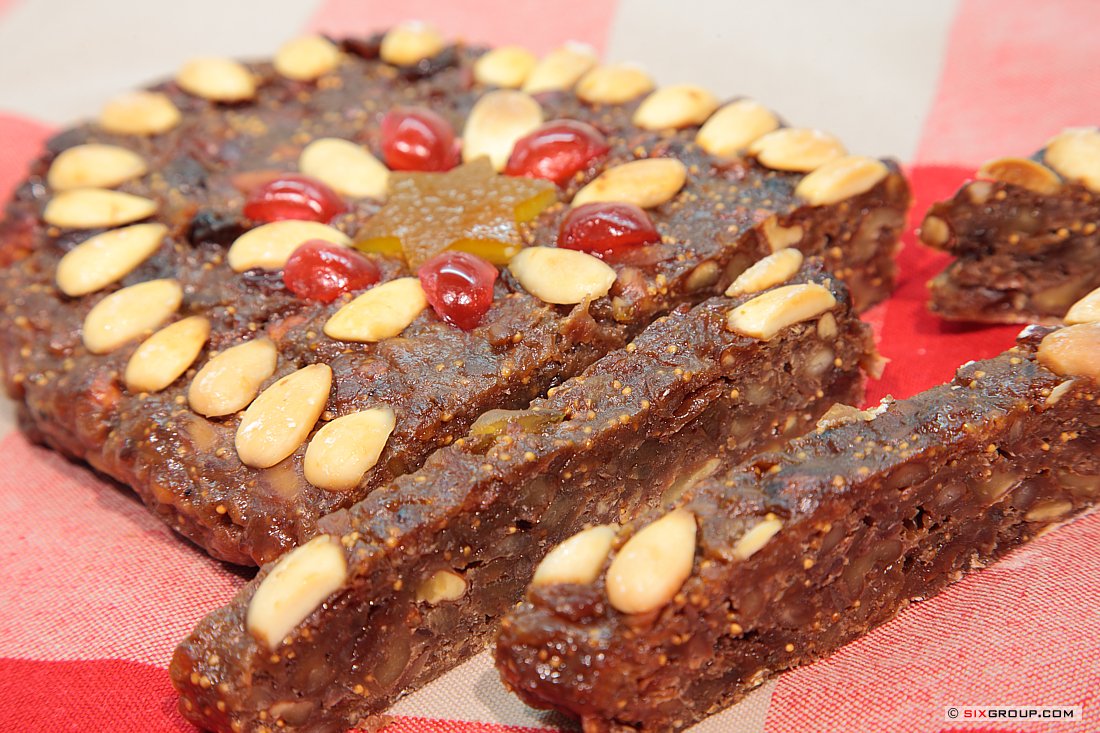 Längliche oder runde Zelten formen, ungefähr 3-4cm dick und 20cm lang. Zelten mit geschälten, gespaltenen Mandeln und halbierten Nüssen verzieren. Auf einem mit Öl bestrichenen Blech unter öfterem Bestreichen mit Honig oder Zuckerwasser schön braun backen (ca.60Min.).
