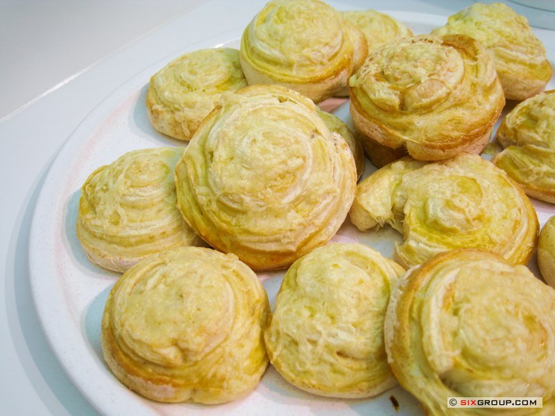 Eigelb mit Wasser verrühren, Brötchen damit bestreichen. Im Backofen (Mitte) 20Min. backen. Mit übrigem Eigelb bestreichen und mit Käse bestreuen. Bei Umluft 180°C (E-Herd: 200°C) 15-20 Min. backen.