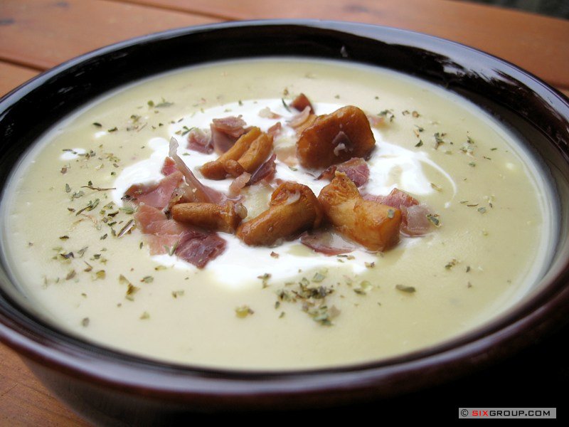 Tipp: Als Einlage eignen sich: Speckstreifen, in Butter gebratene Steinpilze, geröstete Schwarz- oder Weißbrotwürfel.