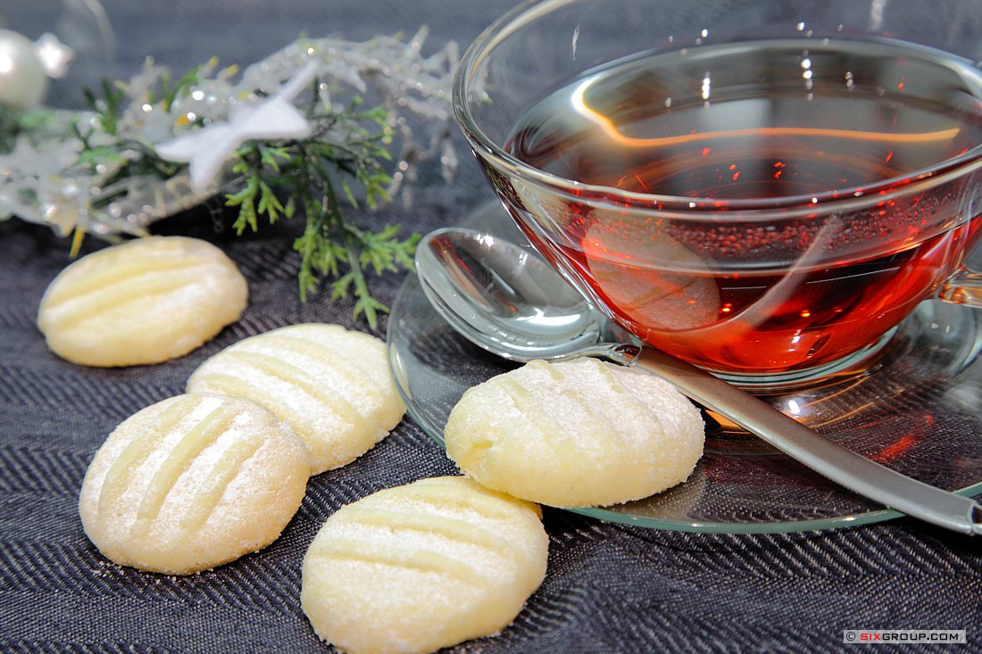 Auf einer Arbeitsfläche Mehl, Puderzucker, Speisestärke, Butter, Vanillezucker, Mark der Vanilleschote und Mandeln rasch zu einem glatten Teig verkneten. In Frischhaltefolie wickeln und ca. 30Min. kalt stellen.